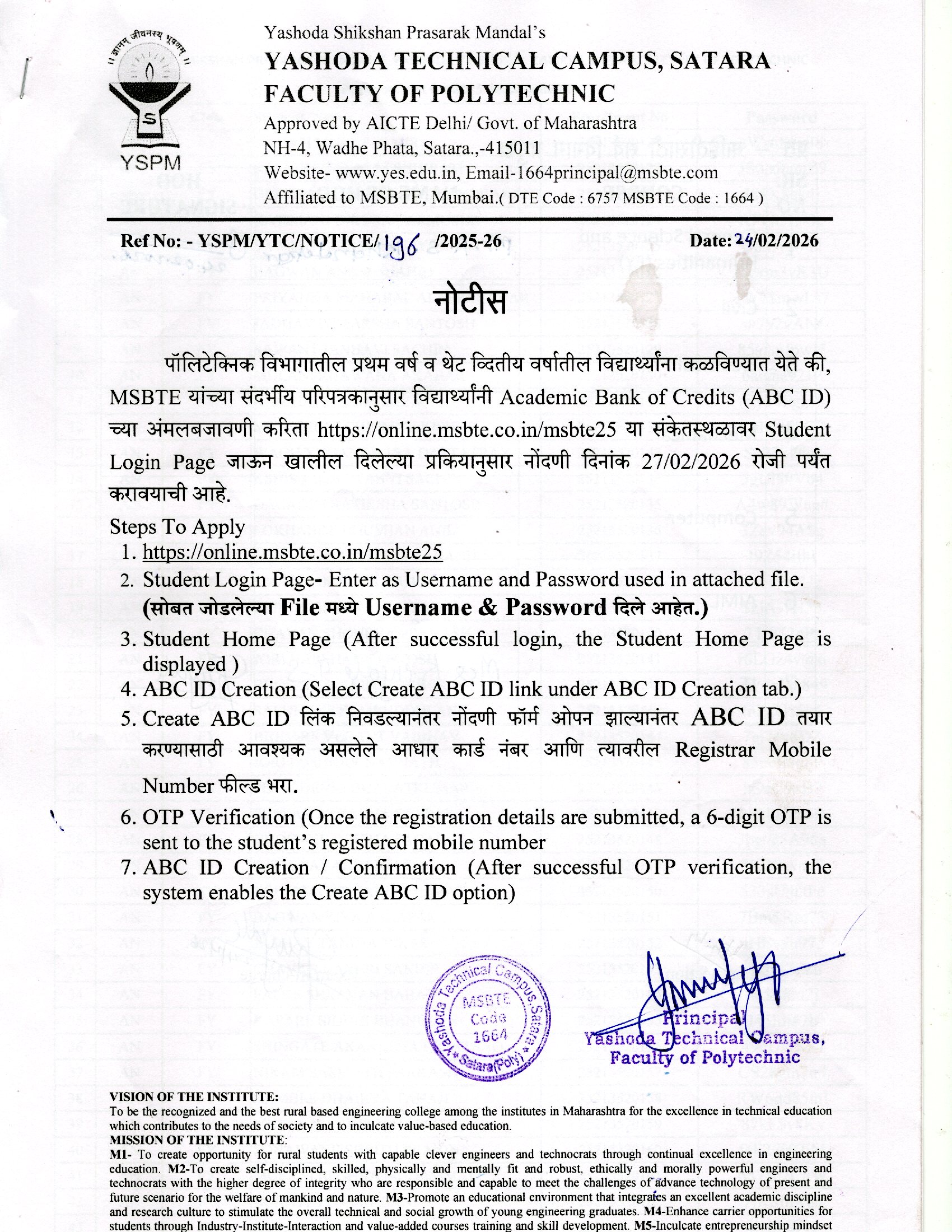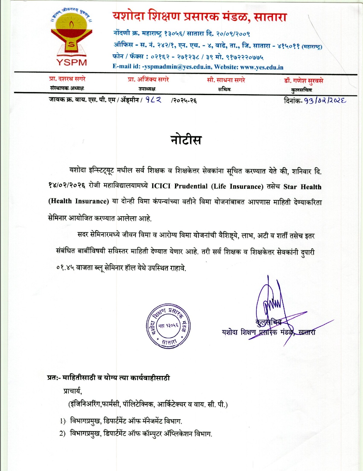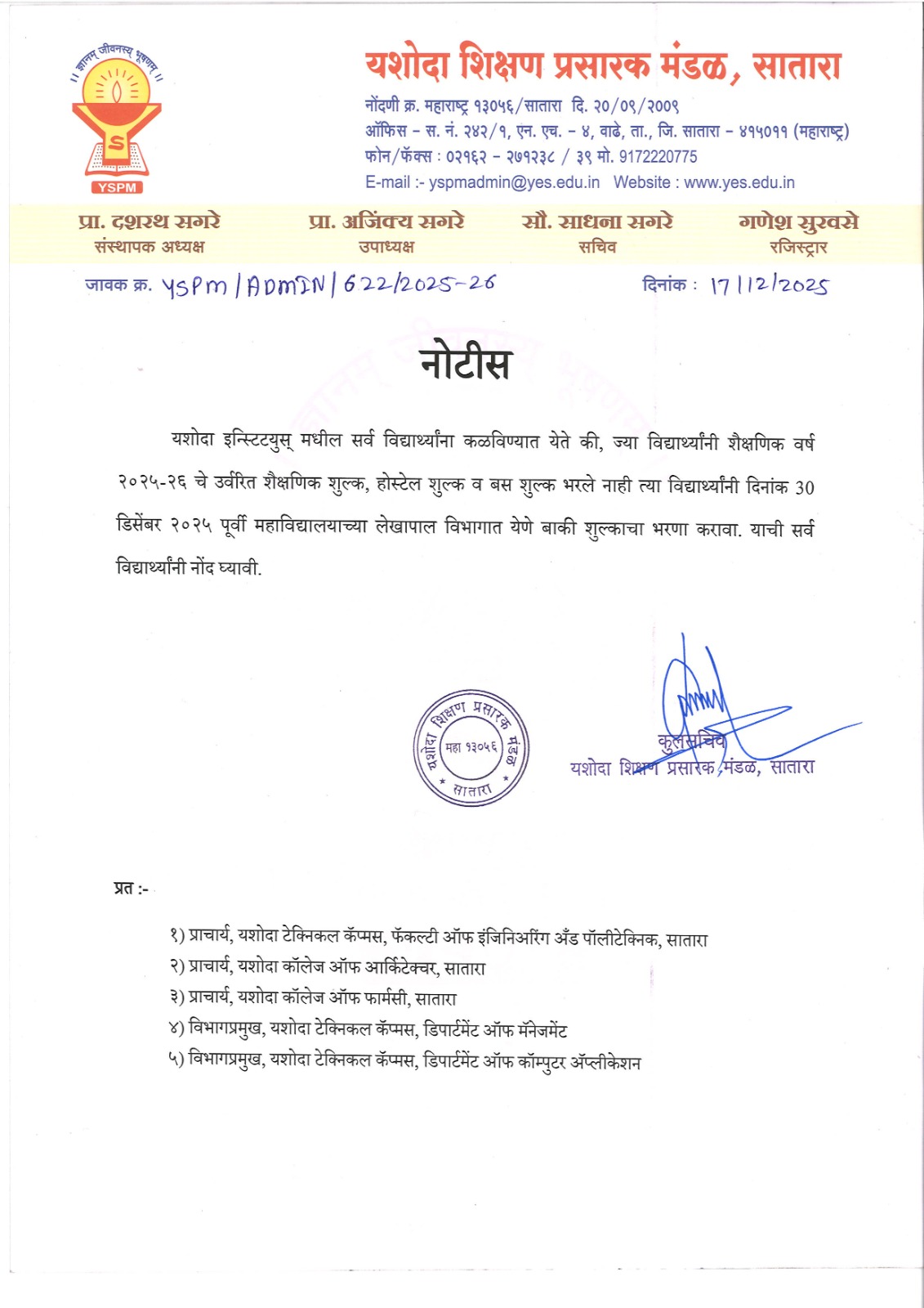लेखी परीक्षा यशोदा टेक्निकल कॅम्पस इंजिनिअरींग अँड पॉलिटेक्निक, सातारा या विभागामध्ये होणार आहे त्याबाबत.. |