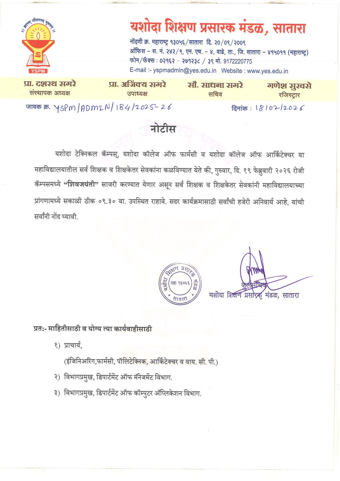 All (Teaching - Non -Teaching Staff, Student ) YSPM |