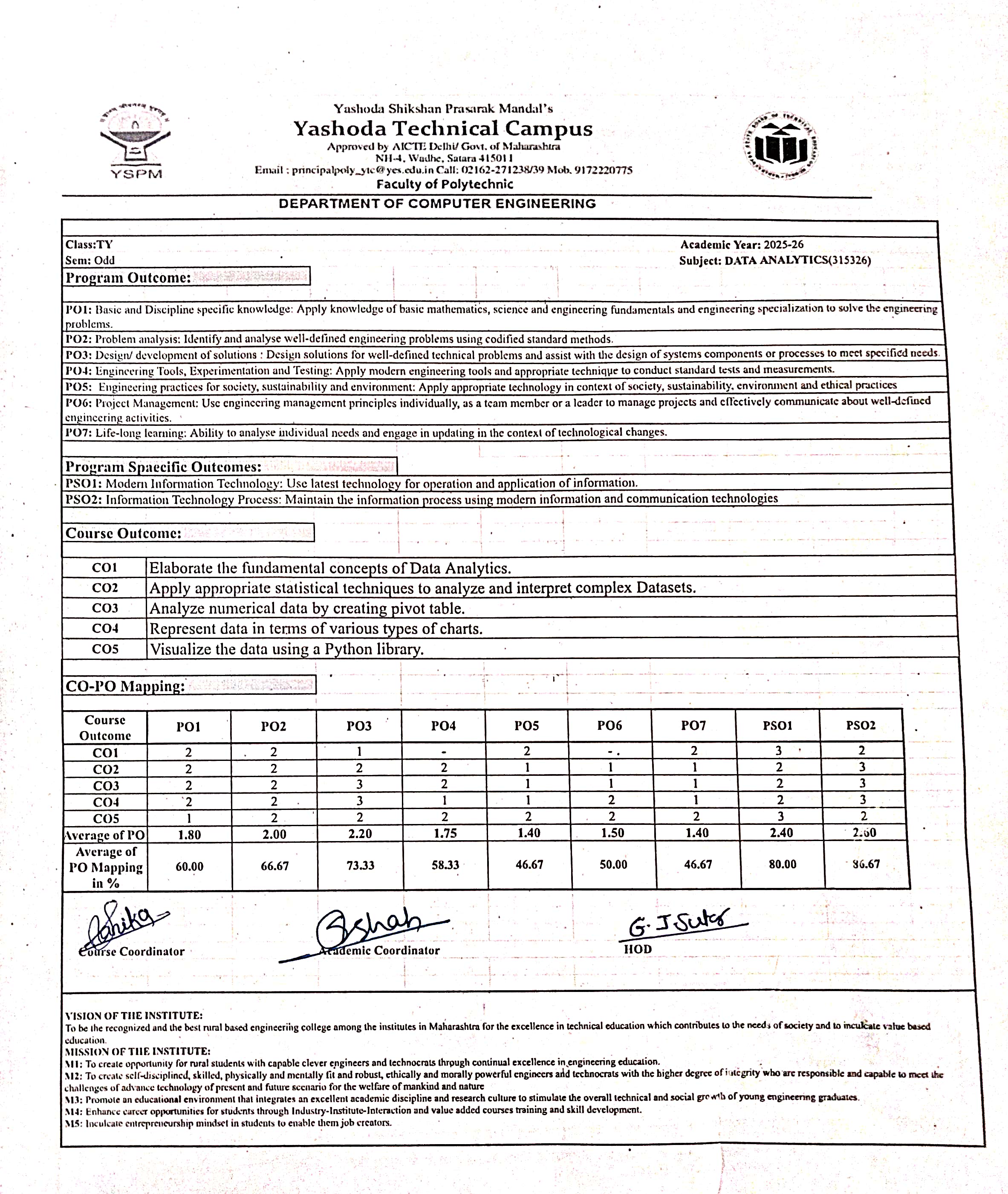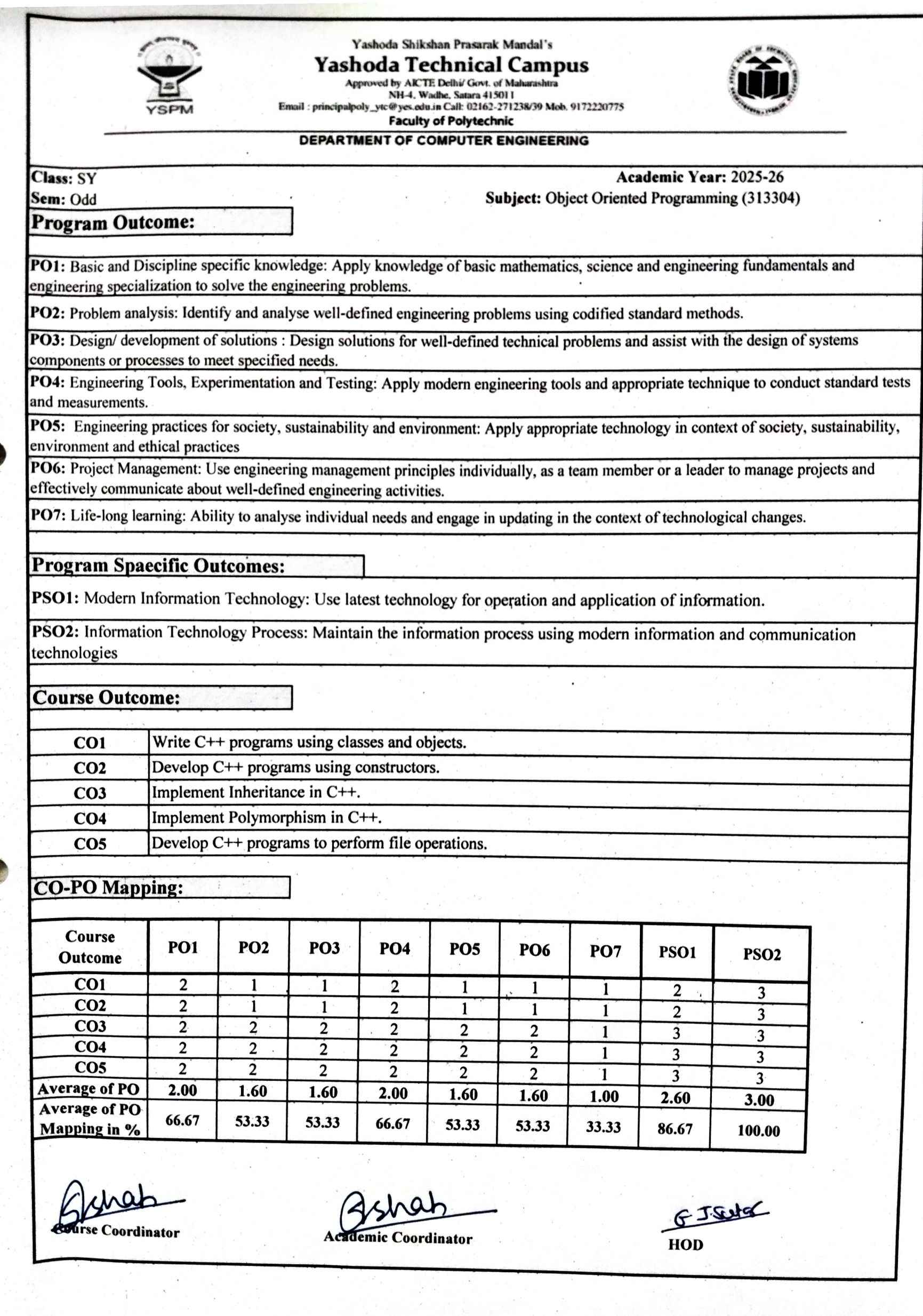 Computer Engineering (Polytechnic) CO-PO Mapping: Computer Graphics -313001 (CGR) Data Analytics- 315326 (DAN) CO PO Object Oriented Programming (OOP) CO PO OOP CO-PO MAPPING DSU CO-PO MAPPING
